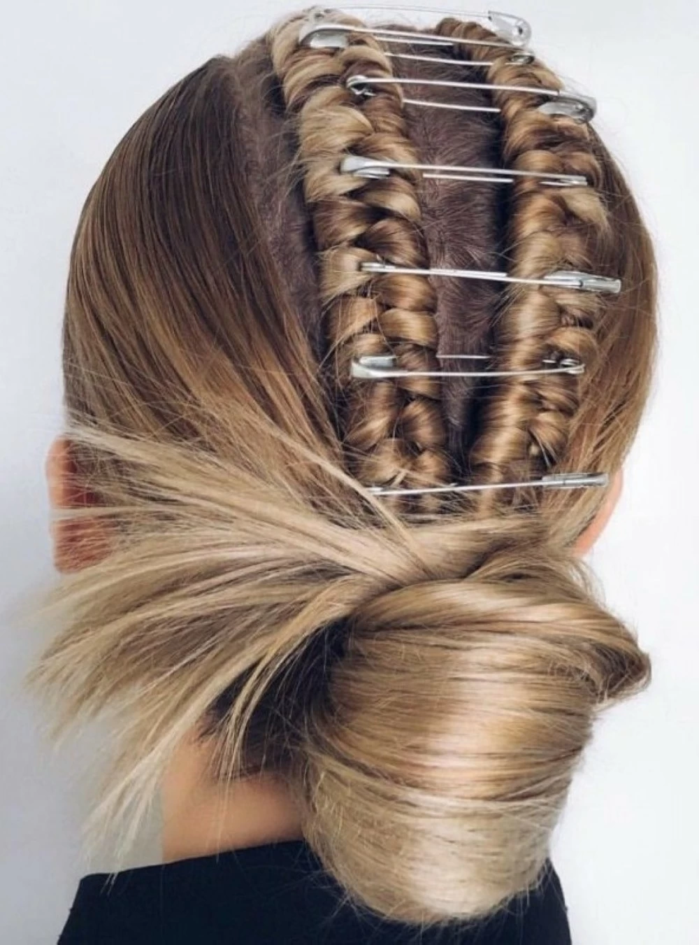 The benefit of this movement lies in its high practicality, especially when suitable hair accessories are not available, as clothespins can be used as a quick and clever solution for decorating hair and securing hairstyles at the same time. These pins are notably used on braids or updos, adding an unexpected visual element that captures attention and enhances the boldness of the look.