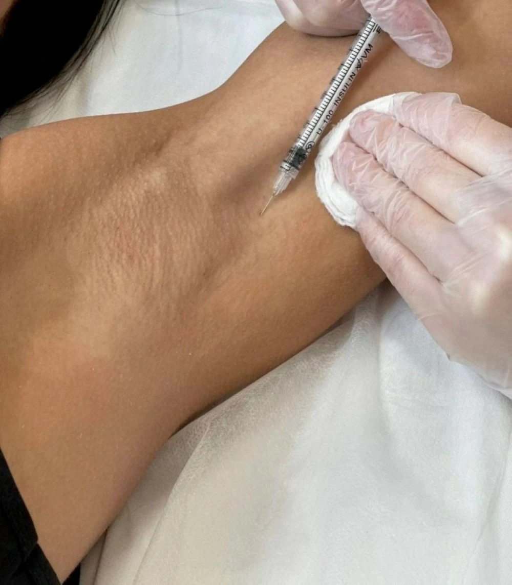 Botox for sweating is considered one of the effective medical treatments for cases of excessive sweating, as it works to reduce sweat secretion in the affected areas such as the armpits, palms, and feet, by stopping the nerve signals that stimulate the sweat glands.
