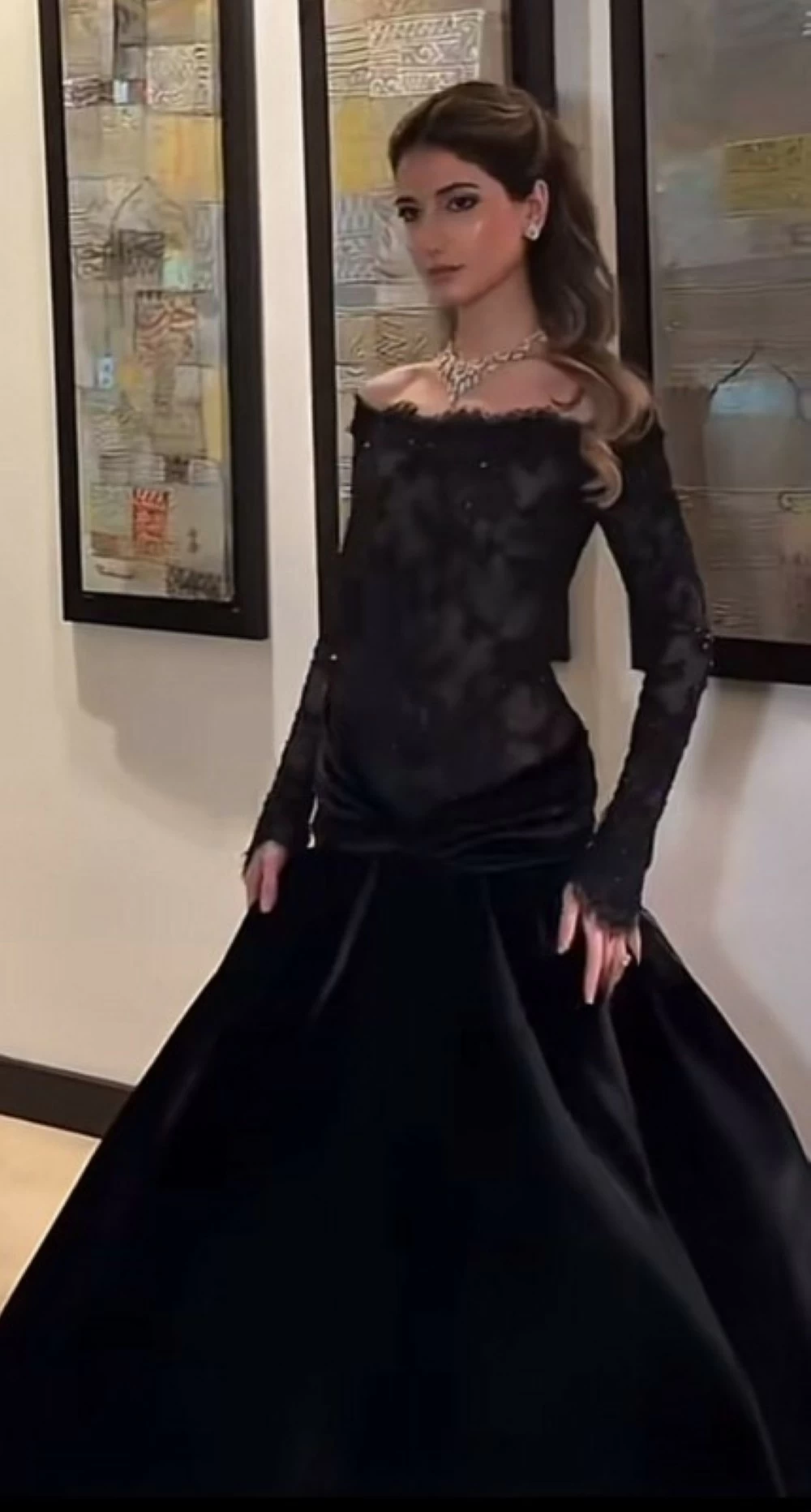 أما شيرين بيوتي فاختارت فستاناً من الدانتيل الأسود بقَصَّة «ميرميد» أنيقة مع أكمام طويلة، ودمجت معه مجوهرات من الألماس ولمسة مكياج سموكي خفيفة عززت حضورها بشكل فاخر.