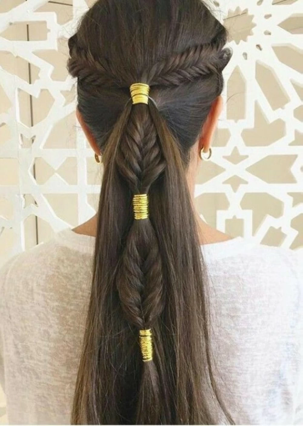 The designs range from traditional to contemporary, with a focus on golden and copper colors that match the festive atmosphere and add a touch of luxury to various hairstyles.