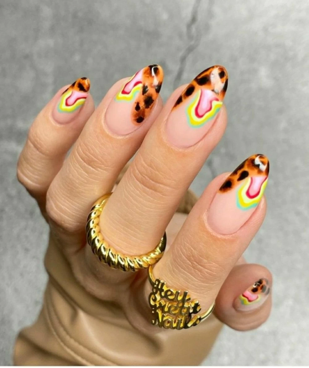 The trend of combining leopard prints with vibrant colors has taken center stage in the world of nail designs this season, offering a striking mix that combines vitality and boldness. This style gives nails a modern, elegant character, with ample space for color manipulation that reflects personal taste.