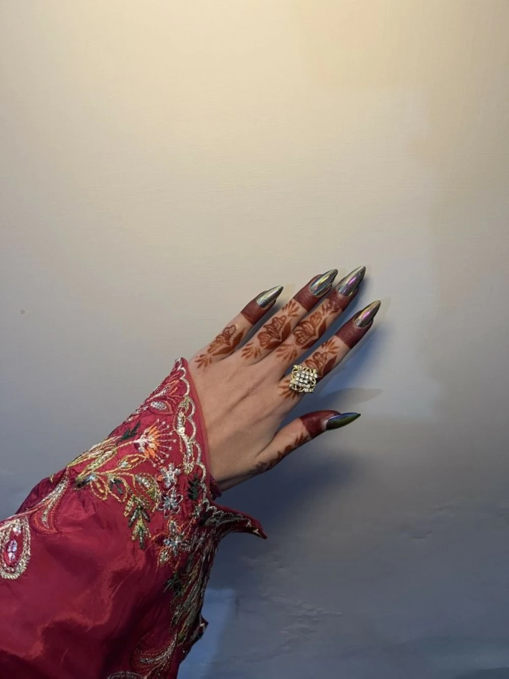 Nail Polish with Eastern Designs Using earthy or golden colors with intricate designs inspired by henna on the nails adds a sophisticated Ramadan touch, especially with soft kaftans and abayas.
