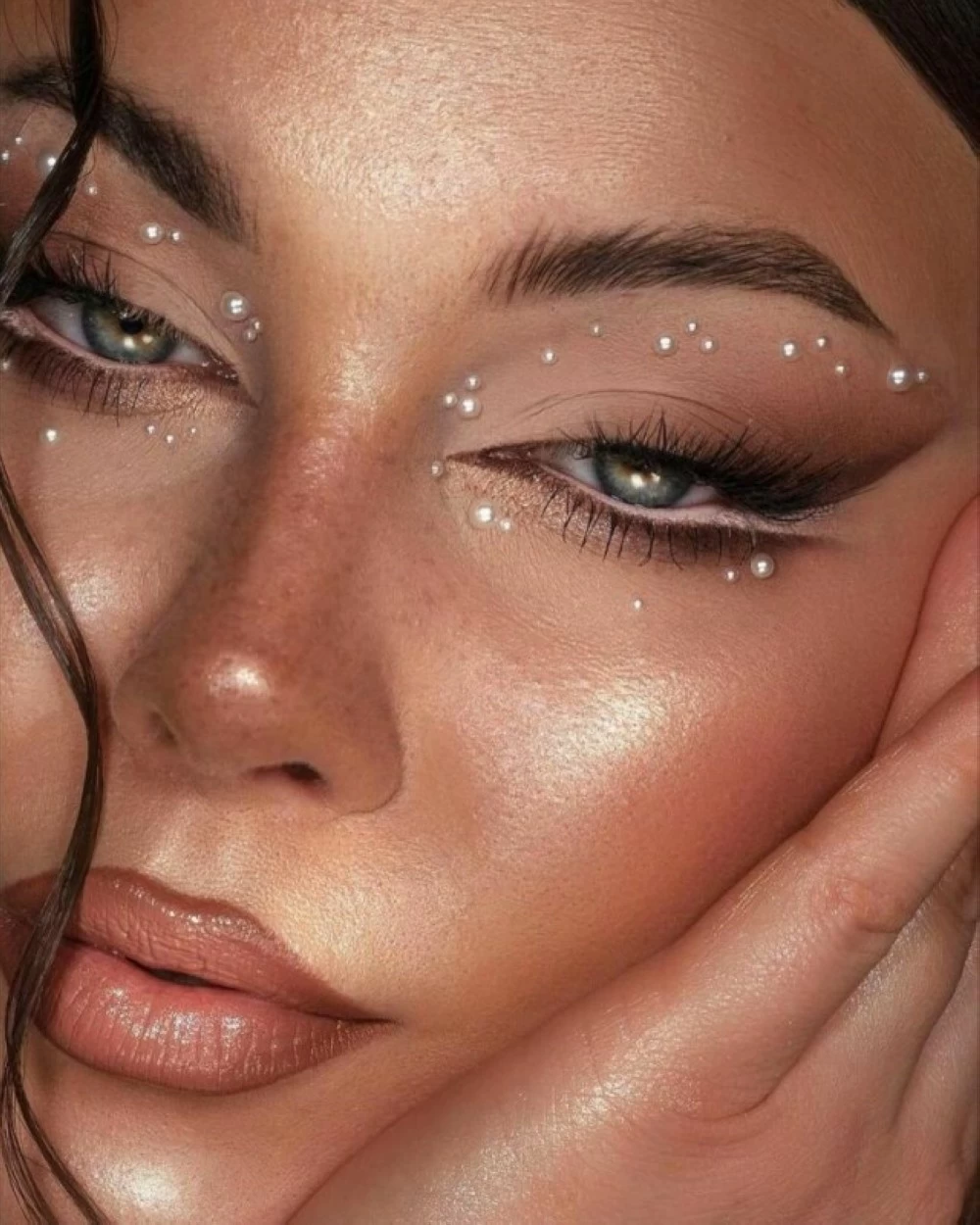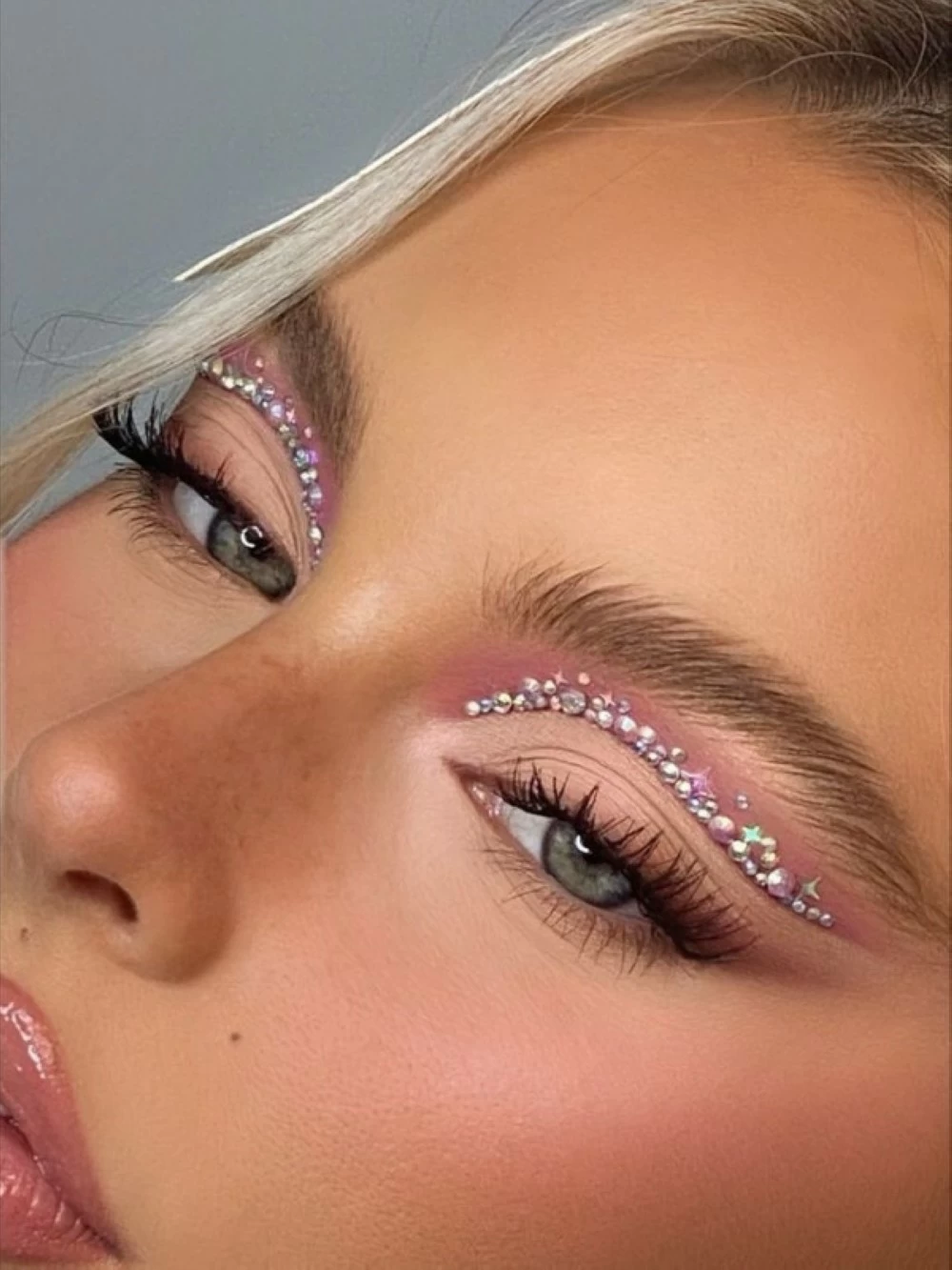 Applying crystal makeup requires precise technique and a high sense of balance. The foundation is always a polished and calm complexion, as crystal is a visually powerful element that cannot compete with other details. The placement of crystals is chosen carefully, such as on the outer corner of the eye, under the brow, on the cheekbone, or in precise dots mimicking tears or stars, while avoiding random distribution that could detract from the look's elegance. The crystals are secured using a makeup adhesive to ensure longevity without affecting the comfort or safety of the skin, taking into account the size and number of stones in relation to the shape of the eyes and face.