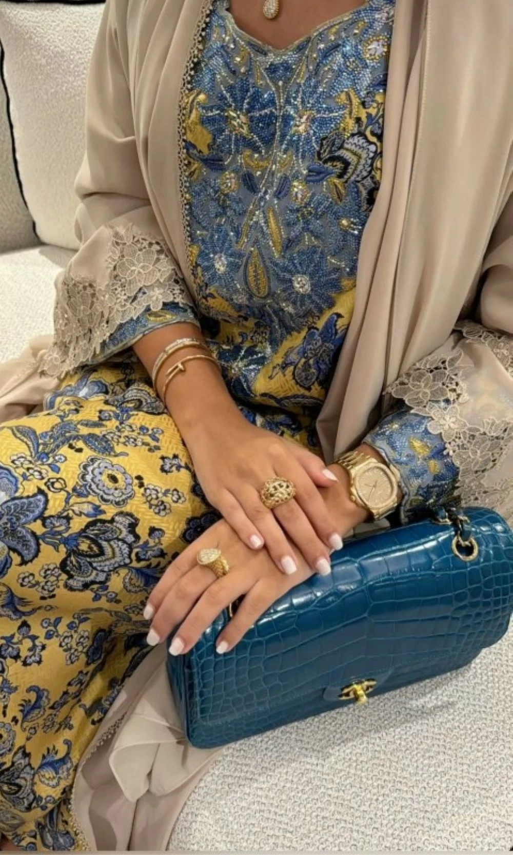 In recent years, the makhwar has evolved from being a traditional home garment to a piece that can be styled in a modern way, by adding elegant belts or soft accessories that give it a more luxurious character. The interest of local designers in reintroducing it with modern cuts and innovative details has also contributed to enhancing its presence both inside and outside the home, making it an option that combines authenticity and renewal.
