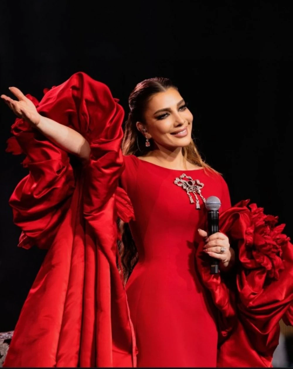 اللون الأحمر لم يكن مجرد اختيار جمالي، بل بدا امتدادًا لحالة الحفل العاطفية، حيث تفاعل مع الإضاءة المسرحية ليمنح الإطلالة بريقًا مضاعفًا على الخشبة. واعتمدت أصالة تنسيقًا متوازنًا في المكياج وتسريحة الشعر، ما أتاح للفستان أن يكون العنصر الأبرز من دون تشتيت بصري، فبدت الإطلالة متكاملة ومدروسة بعناية.