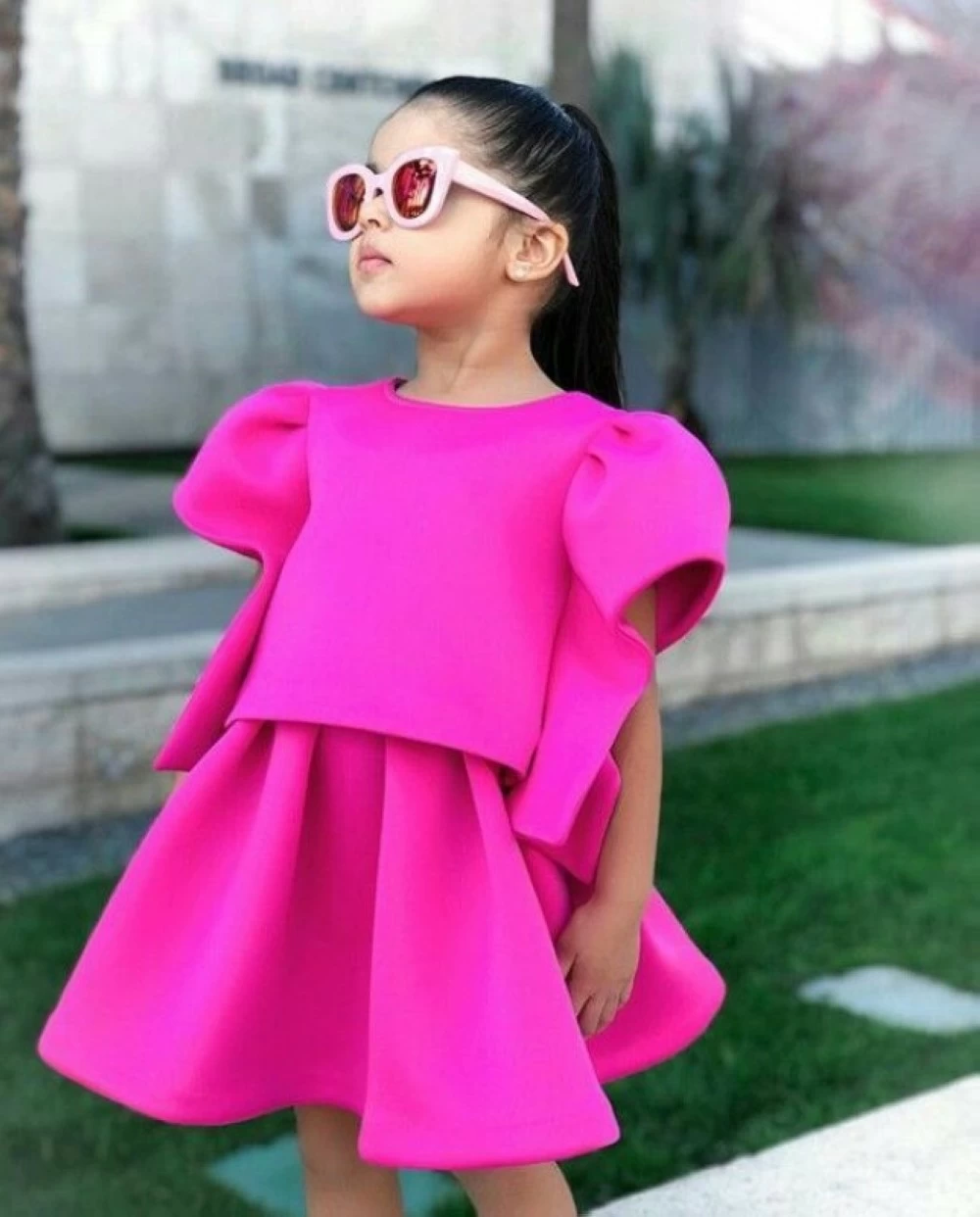 This season, the fashion for little girls' dresses is leaning towards vibrant colors, clearly reflecting the energetic and playful spirit of childhood. Bright shades like hot pink, sunny yellow, lively green, and clear blue have made a strong appearance on fashion runways and store displays, giving the looks a lively and cheerful character.