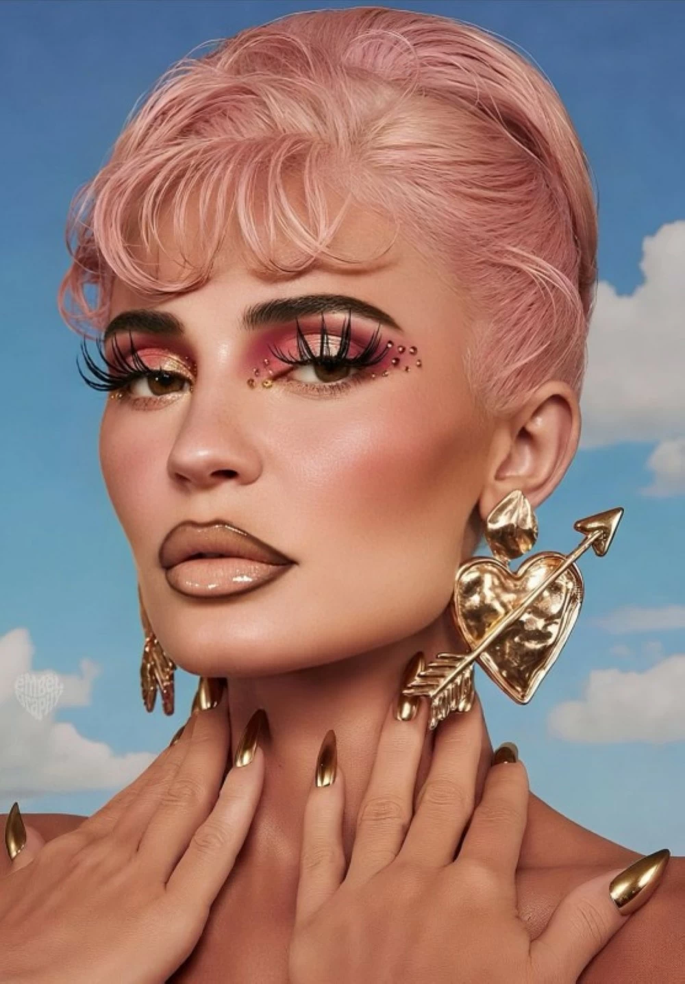 في جلسة تصوير خاصة بمناسبة عيد الحب، اختارت كايلي جينر أن تقدم تصورًا بصريًا مختلفًا يمزج بين الجرأة والبراءة في آنٍ واحد، مستلهمةً ملامح الدمية لكن بروح عصرية لافتة. الإطلالة اعتمدت على مكياج حاد التفاصيل، حيث برزت العيون بأسلوب واسع ومحدد بدقة ليمنحها نظرة زجاجية آسرة، فيما جاءت الرموش كثيفة ومبالغ بها لتعزز الطابع الدرامي الذي ارتكزت عليه الفكرة بالكامل.