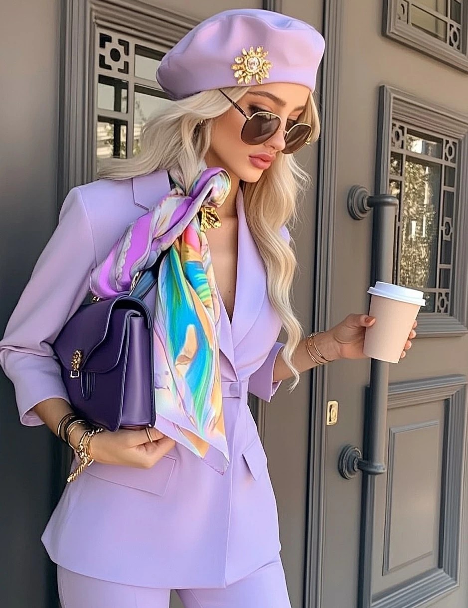Symbolically, purple carries a long history associated with luxury and authority, as it was considered the color of kings and the elite, which explains its continued status as a choice that reflects sophistication and distinction even today. However, its use in modern fashion has become more liberated, as it is no longer confined to formal looks, but has strongly entered everyday fashion and accessories.