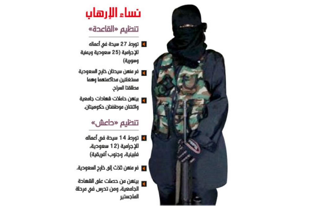 ويضيف «على الفتاة أن تتعلم العديد من مهارات التفكير النقدي التي تقيها من التورط في أمور لا تحمد عقباها، إضافة إلى ترسيخ مهارات التعامل مع مثل هذه الحالات كطلب المساعدة من المختصين في مجابهة الأفكار المتطرفة». وترى الأخصائية الاجتماعية سحر المالكي أن دخول المرأة الإرهاب أشد خطراً ووبالاً من الرجل، كون المرأة هي المعلم الأول ومصدر التغذية الفكرية للنشء، مضيفة أن تأثير المرأة يكون في أحيان كثيرة أقوى من الأب، ما ينعكس تطرفها على أبنائها. وتصف الباحثة الاجتماعية نجوى الحربي أن ظاهرة التطرف بـ«أخطر الظواهر الاجتماعية» التي زادت وطأتها في الأعوام الأخيرة وانعكست سلباً على أمن واستقرار الأوطان والإنسان، معتبرة أن التطرف يأتي نتيجة للفهم الخاطئ للنصوص الدينية.