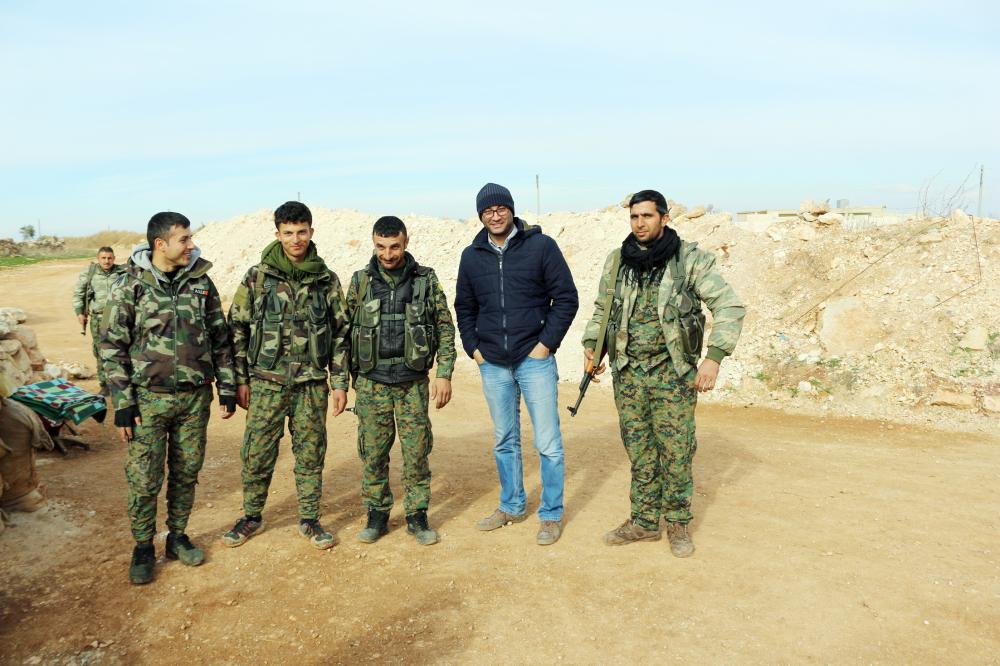 على الخط الأول من هذه الجبهة (باشمرة)، التقينا القائد الميداني «جوار» الذي خاض العديد من المعارك مع جبهة النصرة وفصائل الجيش الحر، وحدثنا عن الاستعدادات لأية معركة مرتقبة، وسط انتشار وتحصينات متينة لـ(ي ب ك) على خط النار الأول.. ولابد من الإشارة إلى أن هذا الجوار جرى قبل يوم واحد من عملية «غصن الزيتون» التركية.