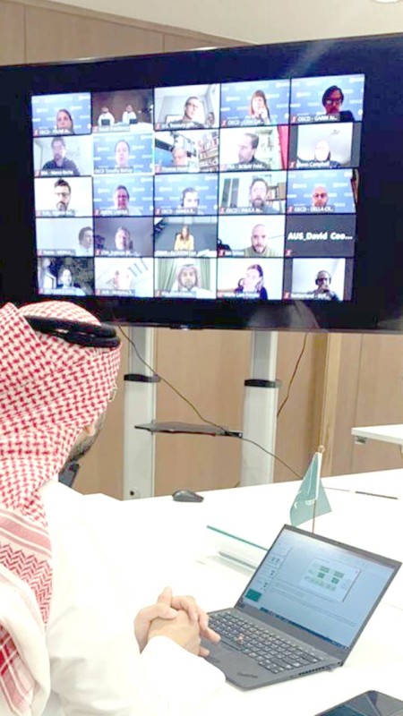 رغم ظروف الجائحة العالمية، أقامت رئاسة المملكة لمجموعة العشرين أكثر من 160 اجتماعا لكل من مسار الشربا والمسار المالي. وأقيم في مدن الرياض وجدة والدمام 40 اجتماعا خلال أشهر العام الأولى، قبل أن تضرب جائحة كورونا بيد من حديد لتحبس أنفاس العالم وتغلق حدود الدول والبلدان، لينتقل التواصل البشري «عن بعد»، إذ أقامت الرئاسة السعودية نحو 127 اجتماعا افتراضيا. وعملت الرئاسة السعودية جاهدة لاستمرار برنامج العمل الطموح للمملكة كما هو مخطط له بعد تعذر سفر الوفود وإجراءات الإغلاق العالمية، ونقلت المملكة بروتوكولات مجموعة العشرين في صور افتراضية، حتى أن الصور التذكارية التي اعتاد الوفود التقاطها في ختام اجتماعات المجموعة على منصة توضح موقع كل وفد، باتت إلكترونية في لقطة واحدة تضم داخلها عشرات النوافذ الصغيرة التي تنقل الصورة من عواصم العالم.