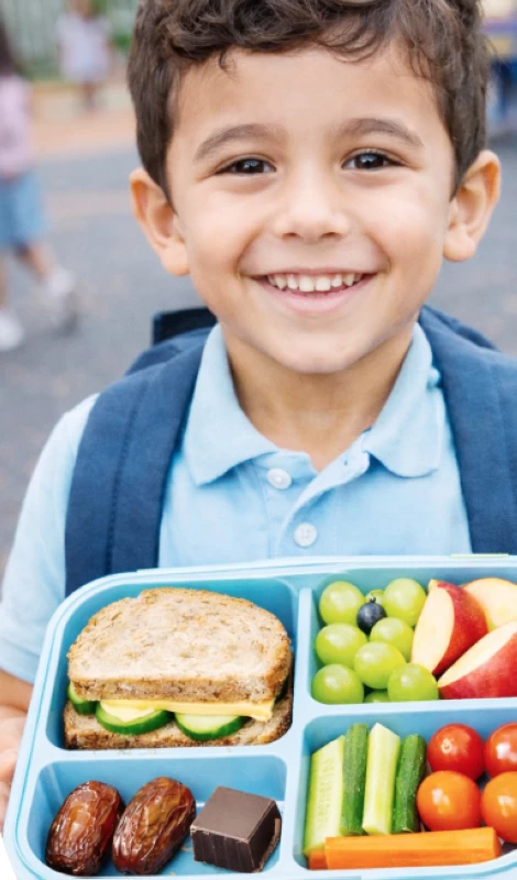 وتنصح الدكتورة أريج باختيار مجموعة متنوعة من الخضار والفواكه مثل الجزر، والخيار، والتفاح، بتقطيعها إلى قطع صغيرة لتسهيل تناولها، إلى جانب البروتين مثل صدور الدجاج المشوية، والبيض المسلوق، أو الحمص، والحبوب مثل شطائر من الخبز الكامل، أو الأرز، مع وجبات خفيفة صحية، ويمكن تضمين المكسّرات أو الزبادي كوجبة خفيفة، مع ضرورة تنويع الأطعمة كل أسبوع لتجنب الملل، وتعزيز الاهتمام بالطعام.