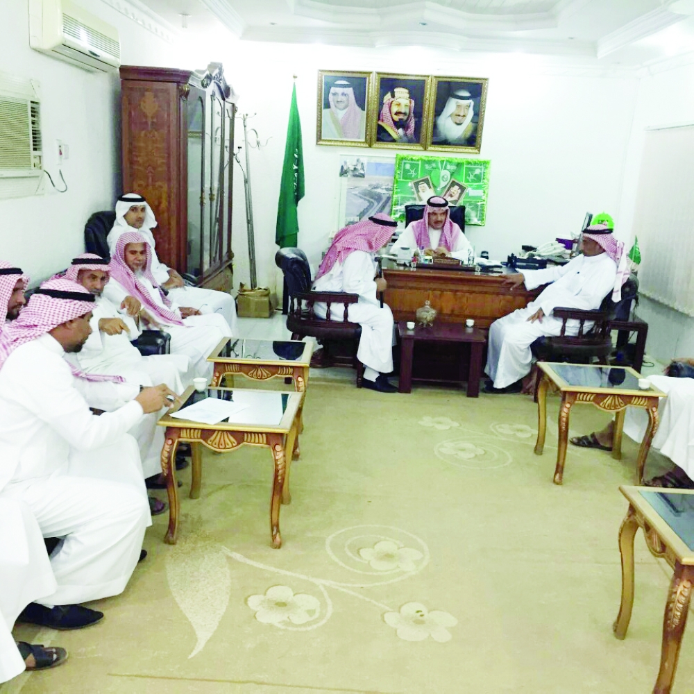 أهالي الطوال خلال التوقيع على الاتفاق في مكتب المحافظ. (عكاظ)