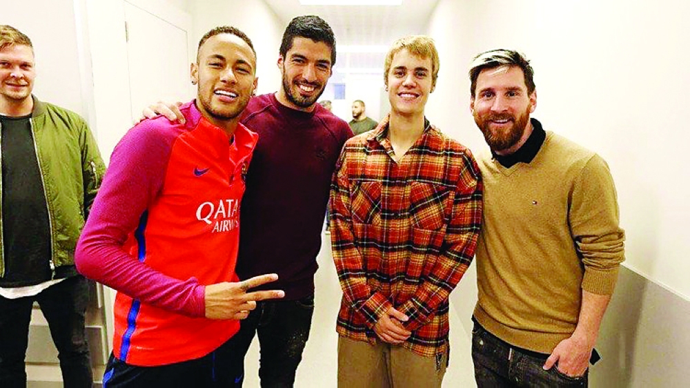 وحرص بيبر على التقاط صور مع ثلاثي برشلونة المرعب المعروفين بـ«الثلاثي الضارب»: الأرجنتيني ليونيل ميسي والأوروغوياني لويس سواريز والبرازيلي نيمار.