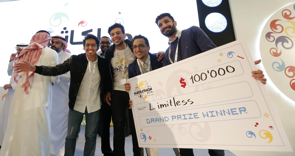 اختتمت مؤسسة محمد بن سلمان بن عبدالعزيز «مسك الخيرية» أمس، ساعات تحدي هاكاثون الأربع والثمانين بـابتكار 32 تطبيقا طبيا تسهم في إنقاذ الأرواح ومداواة آلام المرضى، بطرق إبداعية مختلفة، تراعي الاحتياجات السعودية المحلية، بمعايير عالمية، وكرمت الفرق الفائزة بحضور وزير الصحة الدكتور توفيق الربيعة والأمين العام لمؤسسة مسك الخيرية بدر العساكر. وبعد تنافس شديد بين الفرق المتسابقة، توج بالهاكاثون ثلاث فرق، استحقوا ثلاث جوائز نقدية، الأول فريق «ليميت ليس» بجائزة قدرها 100 ألف دولار عن ابتكار تطبيق يعنى بالربط بين طالبي الدم ومحتاجيه، ويتكون من «ليميت ليس» من ثمانية أعضاء هم سلمان العريفي، منيرة الحسن، طارق سنقورة، إبراهيم خليف، مازن الركيني، أحمد عصام، فاتن بدر، وريهام العبيدان.