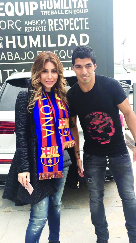 يارا مع لاعب برشلونة سواريز في صورة نشرتها سابقا في حسابها على انستقرام. (عكاظ)