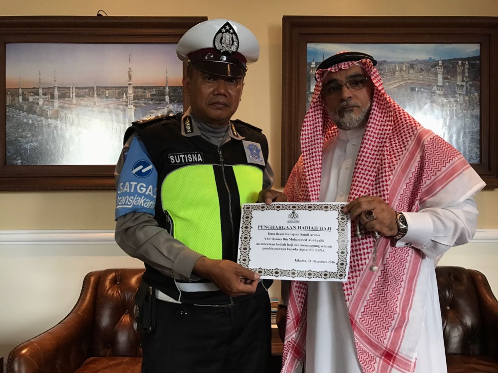 وأضاف: «إنه مما لفت انتباهنا هو تحلي ضابط المرور الإندونيسي بالحلم والسلوك الراقي، الذي تجسد في الصبر على وإساءة المرأة له، مما دفعنا إلى توجيه القائمين على مكتب السفارة بالتواصل معه شخصياً لتكريمه بعمرة إلى بيت الحرام».