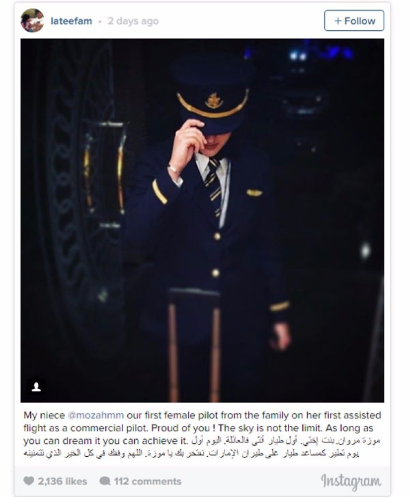 أصبحت مساعد كابتن طيار موزة آل مكتوم حفيدة الشيخ محمد بن راشد آل مكتوم حاكم دبي، أول فرد في العائلة الحاكمة بدبي تعمل طيارا تجاريا في طيران الإمارات.