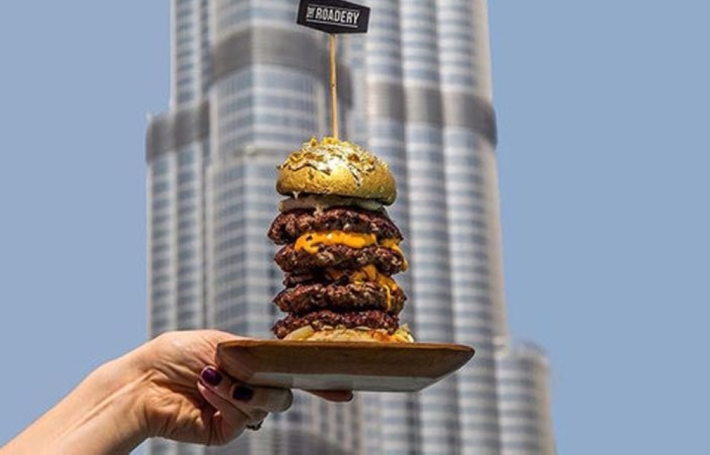 فاجأت حافلة «ذا رودري» البريطانية المشهورة بوصفة #البرغر_الشهية زوار «#مهرجان_دبي_للمأكولات» بعرضها «برغر» مغطى بمسحوق الذهب عيار 24 قيراطاً، ويحمل اسم «برغر خليفة» مستوحاة من برج خليفة في دبي الأعلى ارتفاعاً في العالم، ونقلاً عن «العربية» فإن تحضير الطبق يمزج بين أفخر المنتجات الغذائية من لحم الواغيو وكبد البط ومايونيز الزعفران الفاخر وكاتشاب التوت الأسود.
