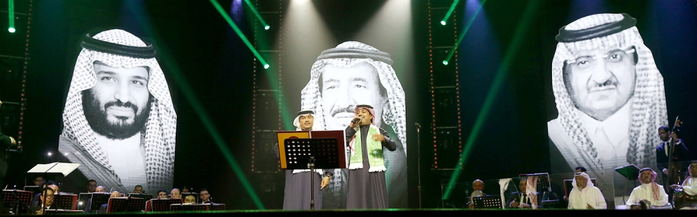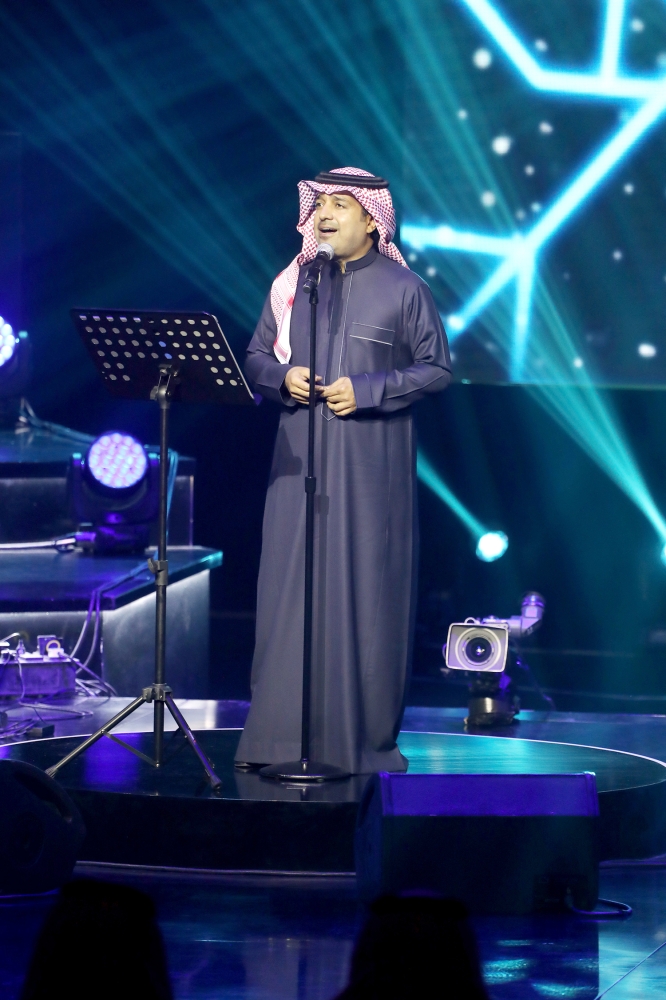 حينما اعتلى الماجد خشبة مسرح الملك فهد الثقافي فوجئ بتحية الجمهور الذي حضر الحفلة، ليبدأ بأغنية وطنية «عاش سلمان»، وتفاعل معها الحضور بشكل كبير رافعين أعلام بلادهم.
