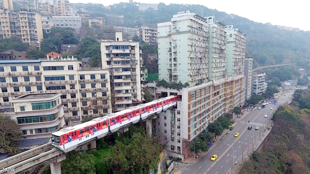شهدت مدينة تشونغتشينغ الصينية تدشين سكة قطار جديد تمر عبر نفق داخل مبنى سكني مكون من 19 طابقا.