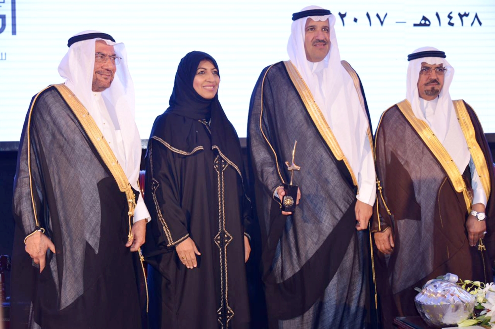 الأمير فيصل بن سلمان لدى تكريمه الفائزين بجائزة مدني. (تصوير: عبدالمجيد الدويني) ocxco@