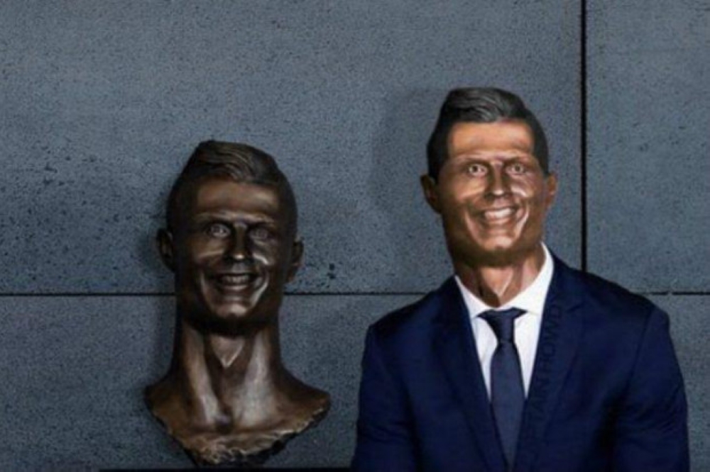 بعد أن تحول تمثال رونالدو المصنع للاحتفاء به إلى مادة هزلية عالمية جعلت من التمثال «أضحوكة» لطريقته وشكله، خرج مصممه عن صمته ملقياً باللوم على الدون البرتغالي نفسه، فبعد أن أغضبت ردود الفعل النحات إيمانويل سانتوس الذي أوكلت له مهمة تصميم تمثال البرونز، قال إن المعني بالأمر الأول رونالدو، فقد طالبه بضرورة تصميم المجسم بتلك الطريقة وبأنه اتبع التعليمات التي طالب نجم ريال مدريد تطبيقها بحذافيرها، ودافع سانتوس عن نفسه أمام المنتقدين بالقول: «كريستيانو كان يرسل لي بعض التعليمات والتوجيهات بخصوص العمل المنجز ولم يكن بوسعي مخالفة أوامره بأي حال من الأحوال»، وحاول النحات البرتغالي والذي سبق له العمل في مطار ماديرا كعامل نظافة من قبل في حديثه للصحافة البرتغالية، تقديم أدلة تؤكد أن رونالدو هو من أصر على ظهور وجهه مبتسما في المجسم.