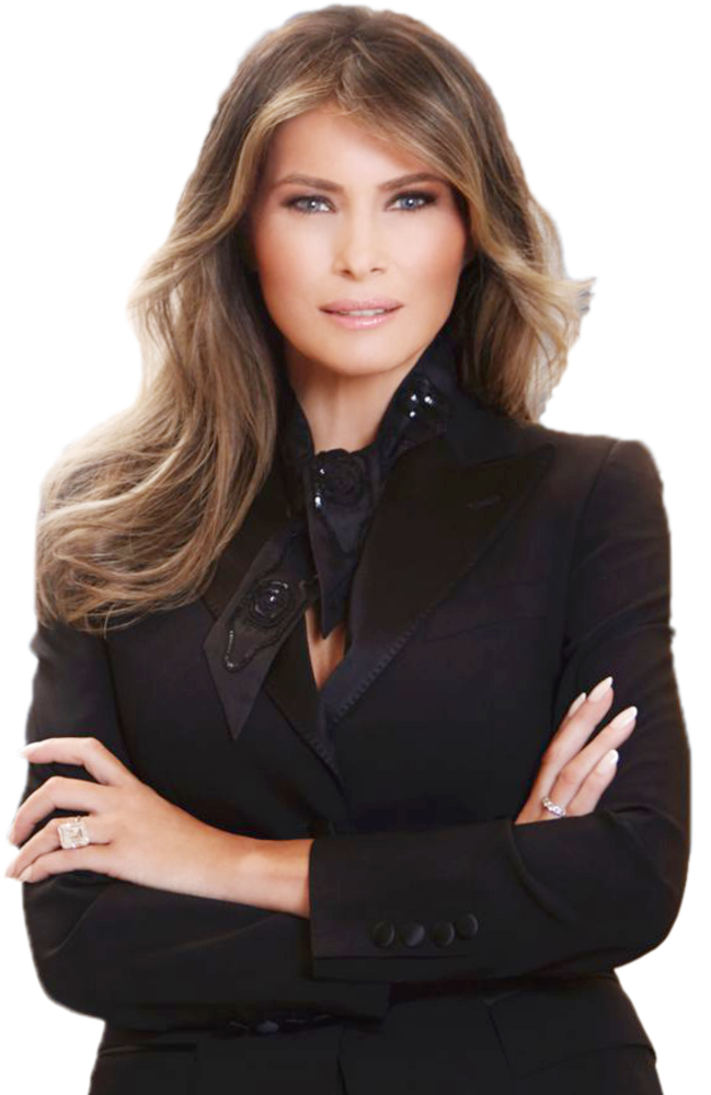 بعد أن اكتسحت إيفانكا ترمب الأضواء لأسابيع، نشر البيت الأبيض على موقعه الإلكتروني أول صورة رسمية للسيدة الأولى في الولايات المتحدة ميلانيا ترمب زوجة الرئيس الأمريكي، وظهرت زوجة الرئيسي الأمريكي (46 عاما) مكتوفة الأيدي وترتدي بدلة سوداء رسمية وتلف عنقها بربطة سوداء، وخاتما كبيرا من الألماس في يدها اليسرى وآخر أصغر في يدها اليمنى.