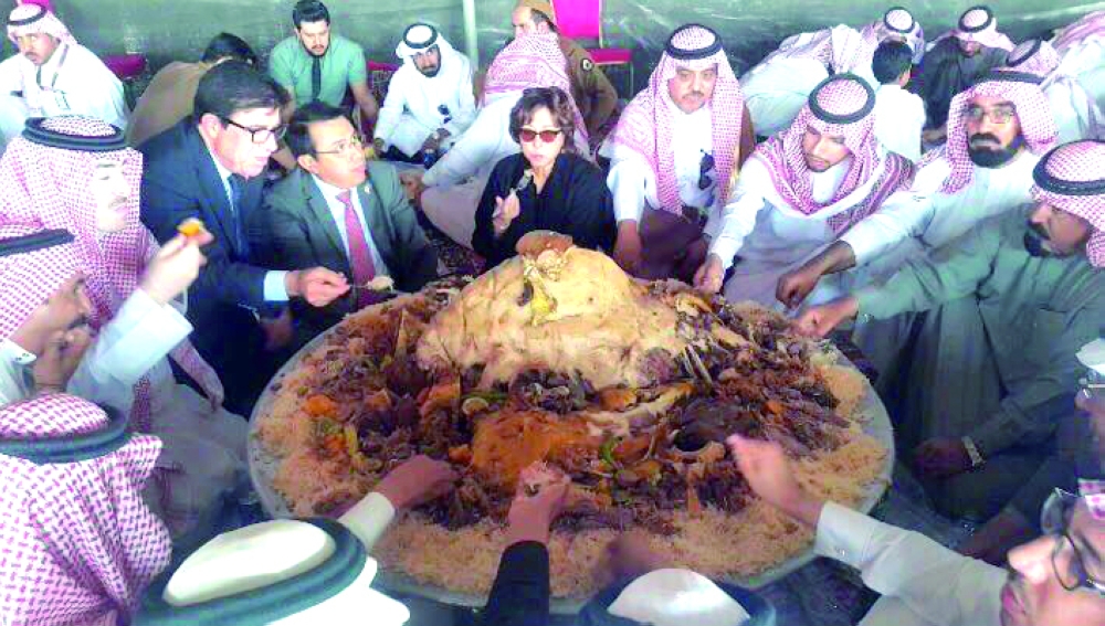 وفي أعماق التاريخ بقي الكرم علامة بارزة لسكان منطقة حائل جيلا بعد جيل، طال سفير جمهورية المكسيك السيد الفريدو ميراندا وزوجته لدى مشاركتهما أهالي مدينة جبة حائل مأدبة الغداء المخصصة لضيوف رالي حائل الدولي 2017، الذي حقق لقبه البطل السعودي الحائلي فارس المشناء ووصيفه السعودي مطير عبدالله الرفيد.