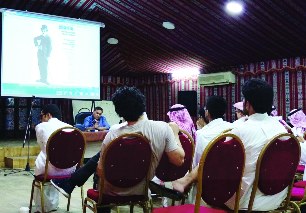 في أمسية سينمائية مختلفة، عاد الحديث عن المخرج الإنجليزي «شارلي شابلن» الشخصية السينمائية الأبرز في ستينات القرن الماضي، قدمها الناقد السينمائي السعودي فهد الأسطا في الملتقى الثقافي بجمعية الثقافة والفنون، تحت عنوان «لنتحدث عن شابلن مجددا» بخيمة الجمعية بالرياض أخيرا.