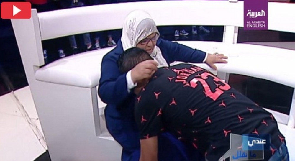 الشاب أثناء توسله والدته على الهواء مباشرة.