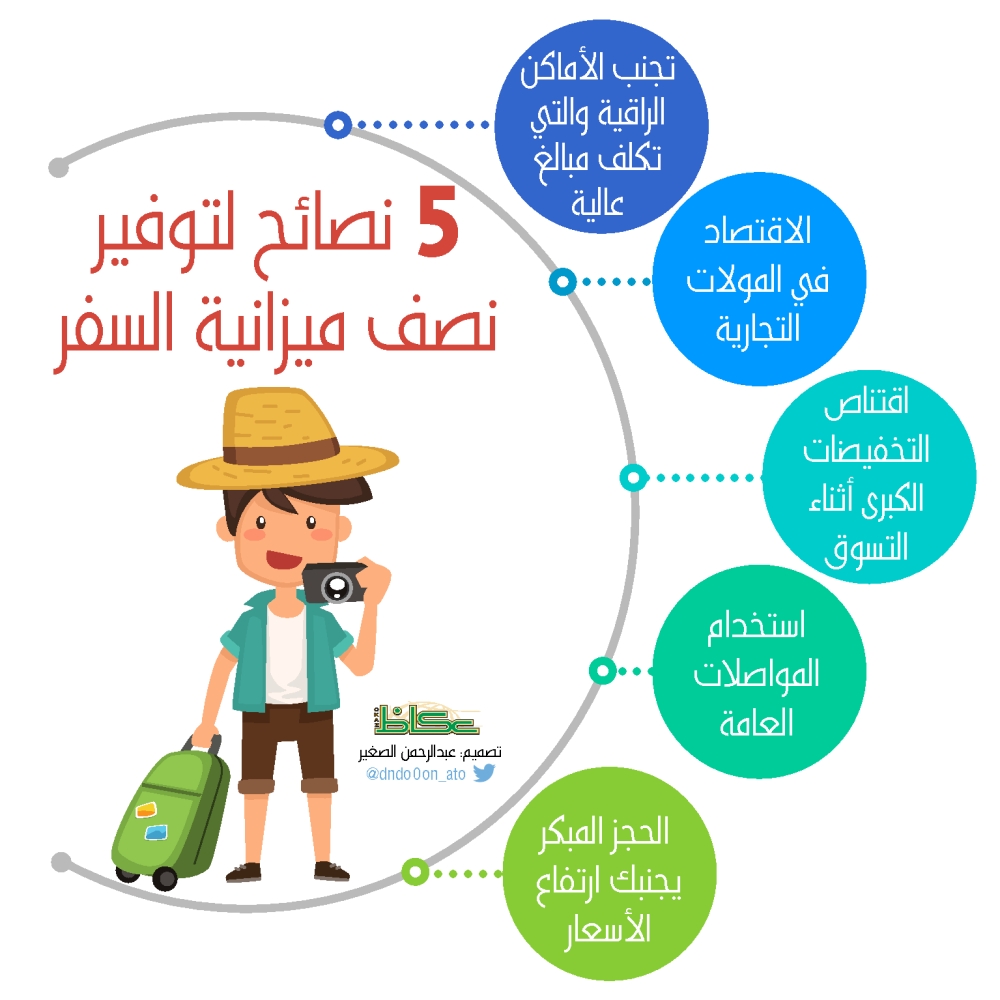 وجه عضو لجنة الإعلام السياحي الفرعية باللجنة الوطنية للسياحة بمجلس الغرف السعودية محمد بن صالح آل عبدالكريم، خمس نصائح للمسافرين في عطلة الصيف المقبل، مؤكدا أن تطبيقها سيوفر على المسافر نصف المبلغ الذي سيصرفه في إجازته، التي تحتاج إلى التخطيط المسبق، دعايا الجميع إلى التنظيم الجيد قبل السفر.