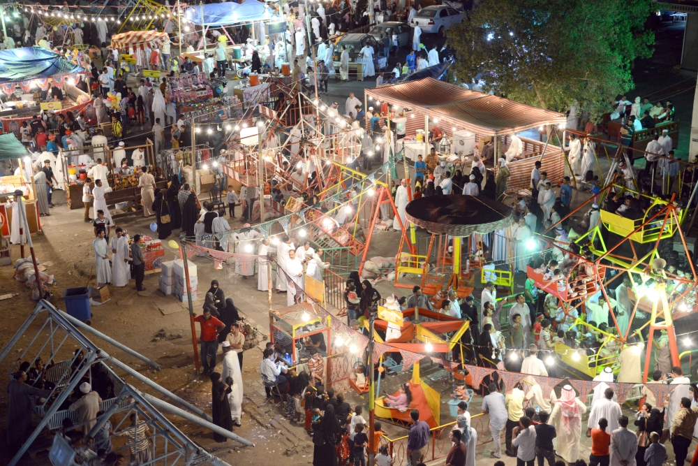 ساحة العيدروس في إحدى ليالي العيد. (عكاظ)
