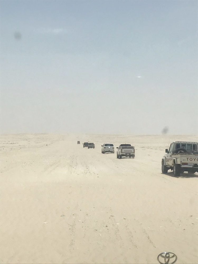 رتل من سيارات المتطوعين تمشط الصحراء بحثا عن المفقود.
