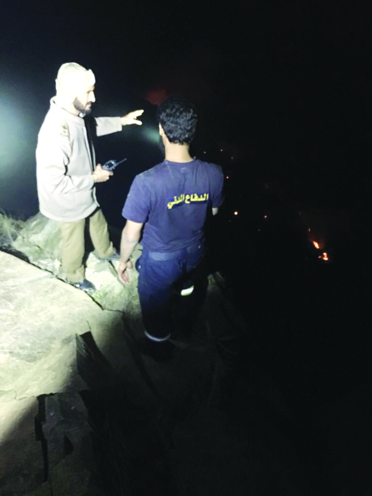 اكتفى رجال الدفاع المدني في محافظة بلقرن بمراقبة حريق شب في أشجار عرعر وعتم في غابات وسط الجبال في الحفياء وقرى آل عليان القريبة من مركز باشوت.