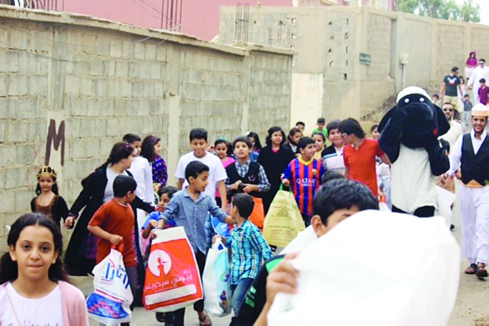 أطفال في يوم القرقيعان في إحدى قرى الباحة.