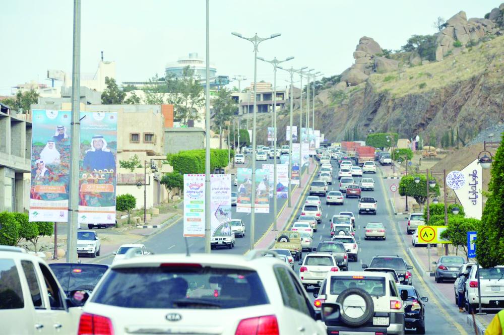 163 لوحة دعائية تنتشر في شوارع أبها تزامنا مع انطلاق الحفلات الغنائية. (عكاظ)