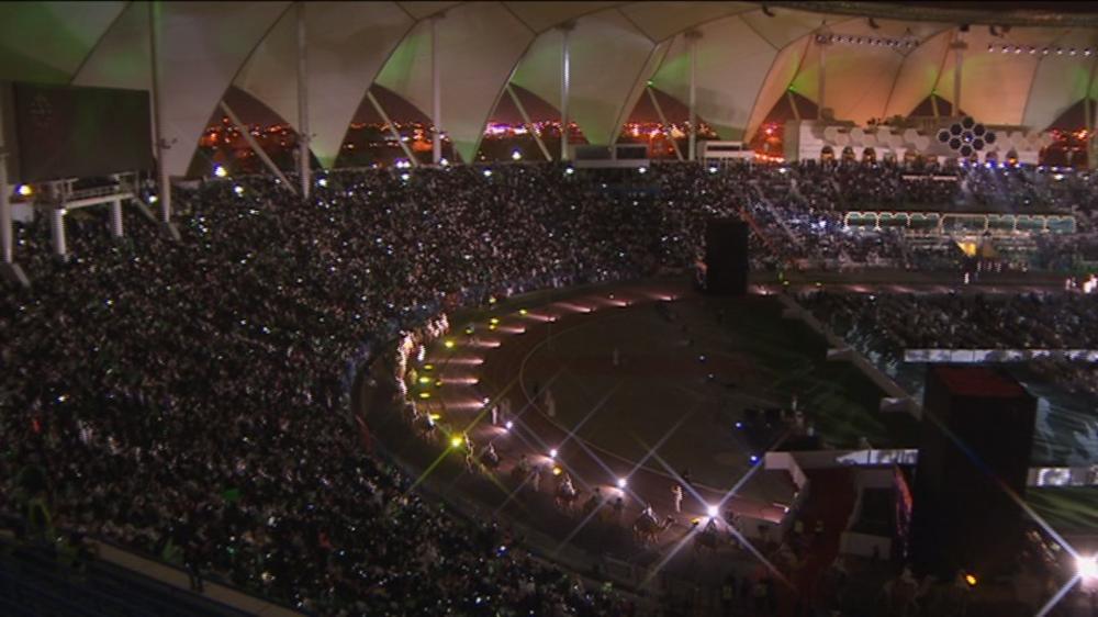 وعرضت فعالية «ملحمة وطن» التي دخل إليها الجمهور مجاناً، 3 فترات زمنية رئيسية الأولى تروي حكاية الجزيرة العربية، والفصل الثاني من الملحمة يروي قصة توحيد المملكة العربية السعودية على يد مؤسسها الملك عبد العزيز بن عبد الرحمن آل سعود ولوحة الفصل الأخير تناولت رؤية السعودية 2030 المستقبلية في عهد خادم الحرمين الشريفين الملك سلمان بن عبد العزيز آل سعود وسط تمازج مميز جمع الضوء بالصوت بأداء فني لم يشاهد من قبل، والتي غمرت نفوس الحاضرين والمشاهدين بالمشاعر الوطنية.