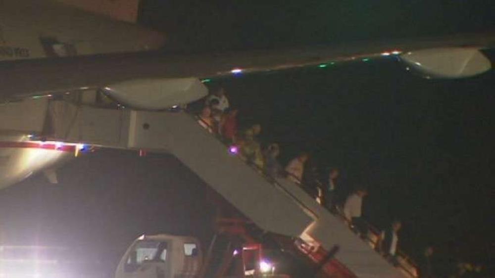 وكانت الطائرة وهي من طراز بوينغ 777، تقل 349 راكباً، قاموا بالنزول من الأبواب المخصصة للطوارئ.