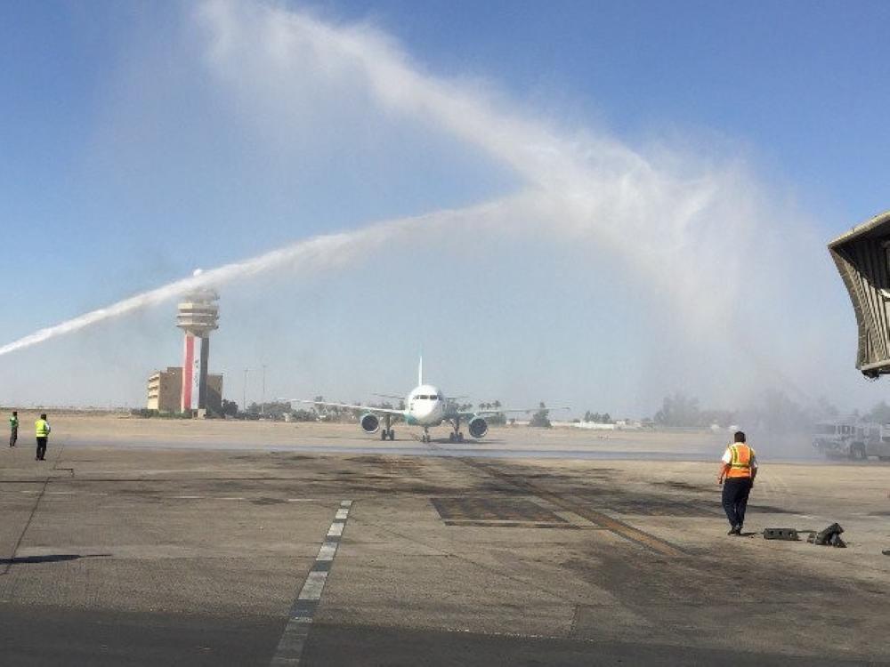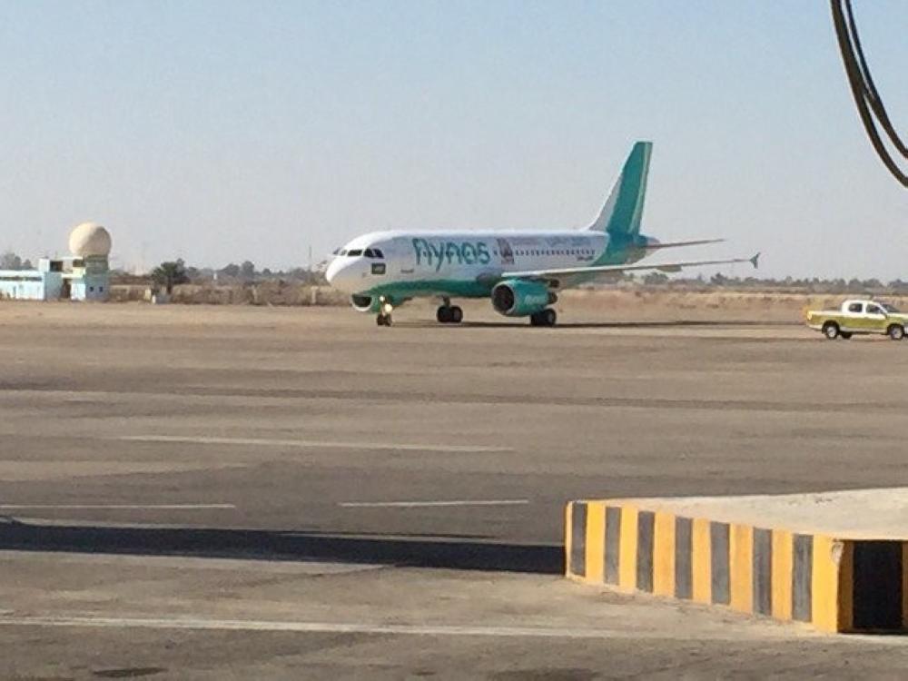 وبحسب الوزارة، فإن "وزير النقل كاظم فنجان الحمامي والقائم بأعمال السفارة السعودية في بغداد كانا باستقبال الطائرة".