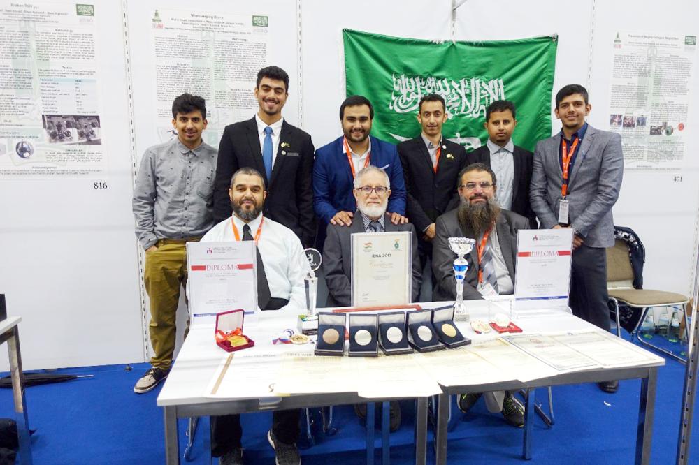 فيما فاز بميدالية iENA 2017 الذهبية خالد الساطي عن ابتكار «درون» لاكتشاف الألغام، وبالفضية كل من سارة الزهراني عن ابتكار نقل الطاقة لا سلكيا، وهشام القبس عن ابتكار المطب الآلي، ومشعل علي حامد عن نظام الغواصة المتكامل، وسلطان الأحمدي عن الخزانة الذكية.