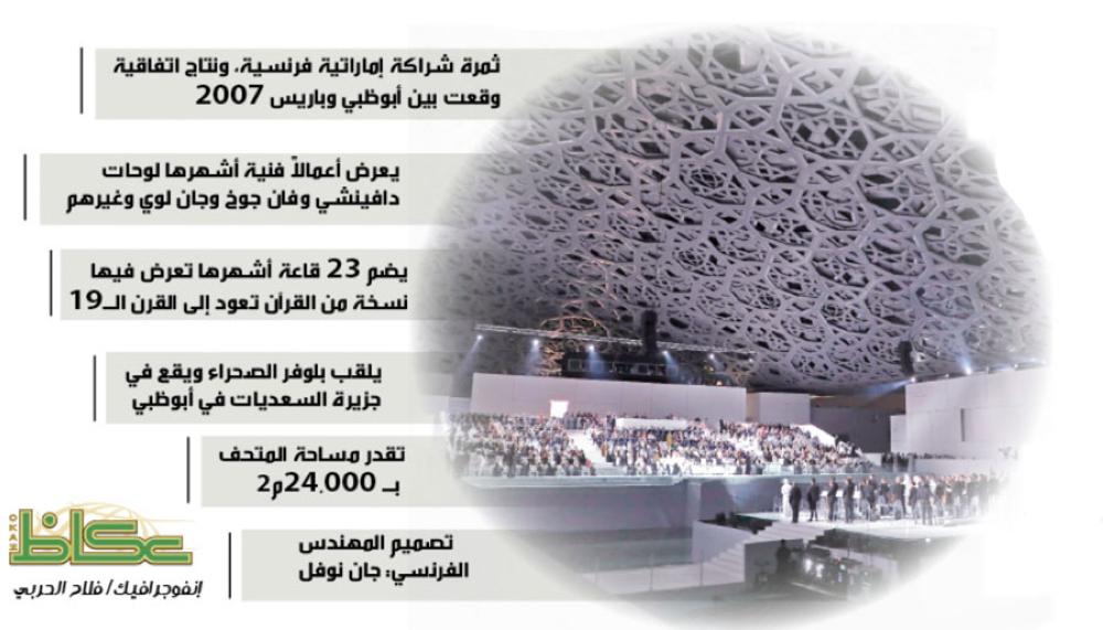 افتتح أمس (الأربعاء) رسمياً، متحف اللوفر في أبوظبي، بحضور نائب رئيس دولة الإمارات رئيس مجلس الوزراء حاكم دبي الشيخ محمد بن راشد آل مكتوم، وولي عهد أبوظبي نائب القائد الأعلى للقوات المسلحة الإماراتية الشيخ محمد بن زايد آل نهيان، والرئيس الفرنسي إيمانويل ماكرون، وملك البحرين حمد بن عيسى بن سلمان آل خليفة، وعدد من الرؤساء، والملوك، والشخصيات البارزة.