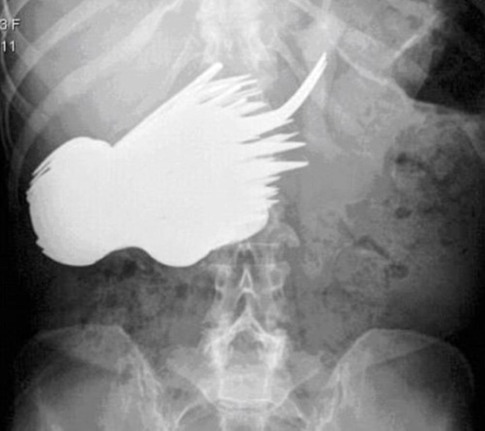 لم يعد مفاجئا أن يكتشف الأطباء مقصا جراحيا أو ملقاطا طبيا أو حتى شريطا لاصقا في بطن أحد المرضى، بعد خضوعه لعملية جراحية، إلا أن الغريب أن يعثر الأطباء على 78 شوكة وسكينة وملعقة في معدة امرأة تبلغ من العمر 52 عاما، حين أحضرها أحد أبنائها محمولة إلى طوارئ أحد مستشفيات هولندا. تشكو آلاما حادة في بطنها بشكل عام. وبعد إجراء التحاليل والأشعات اللازمة، فوجئ الأطباء بوجود عدد كبير من القطع المعدنية، لم يتمكنوا من تشخيصها، إلا بعد إخضاع المرأة لجراحة عاجلة، ليكتشفوا في غرفة العمليات وجود هذا العدد الكبير من أدوات المطبخ، فيما استغرق إجراء العملية أكثر من 7 ساعات لانتشال الشوك والملاعق والسكاكين.