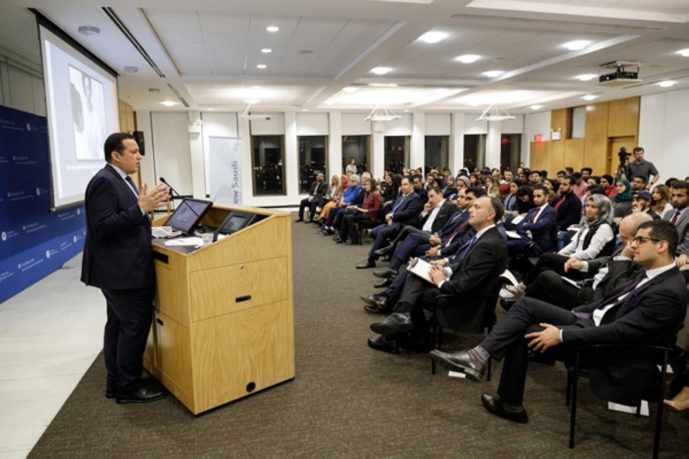 الدخيل يتناول نظرة الإعلام عن المملكة في جامعة كولومبيا بنيويورك