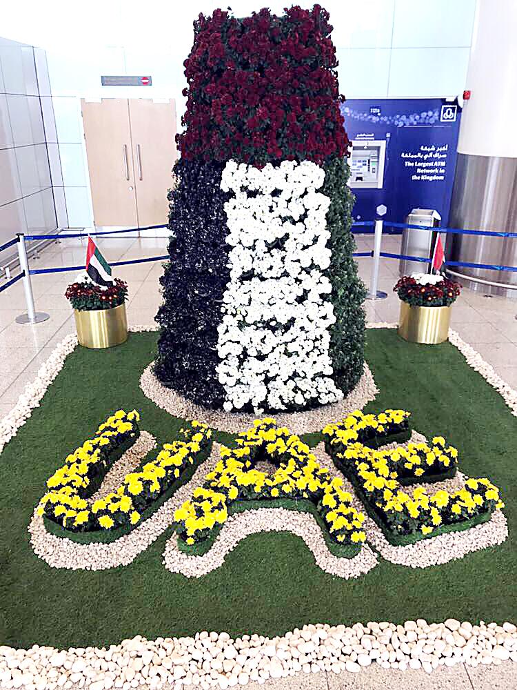 تفاعل السعوديون مع أشقائهم في الإمارات العربية المتحدة، احتفالاً باليوم الوطني السادس والأربعين للإمارات العربية المتحدة، وتزينت شوارع المدن السعودية وبعض الجهات الحكومية والخاصة بأعلام البلدين الشقيقين، وتوشح مطار الملك خالد في الرياض أمس (السبت) ألوان العلم الإماراتي في كل أرجائه وسط مشاركة كبيرة من المسافرين والعاملين بالمطار، واستقبل السفير الإماراتي في المملكة الشيخ شخبوط بن نهيان آل نهيان وعدد من مسؤولي المطار والجهات الأمنية أمس، القادمين على أول رحلة من الإمارات العربية المتحدة، فيما تزين مبنى الخطوط السعودية أمس بألوان علمي دولة الإمارات والمملكة والصور الوطنية، كما تزين برجا المملكة والفيصلية بذات الألوان، فيما قدمت الخطوط الجوية العربية السعودية 1971 ميلا إضافيا هدية لضيوفها أعضاء برنامج الفرسان على رحلاتها بين المملكة والإمارات أمس، بمناسبة اليوم الوطني لدولة الإمارات العربية المتحدة. وتداول نشطاء في مواقع التواصل الصور عبر وسم «#عزكم_عزنا» وعبروا عن عمق العلاقة بين البلدين.