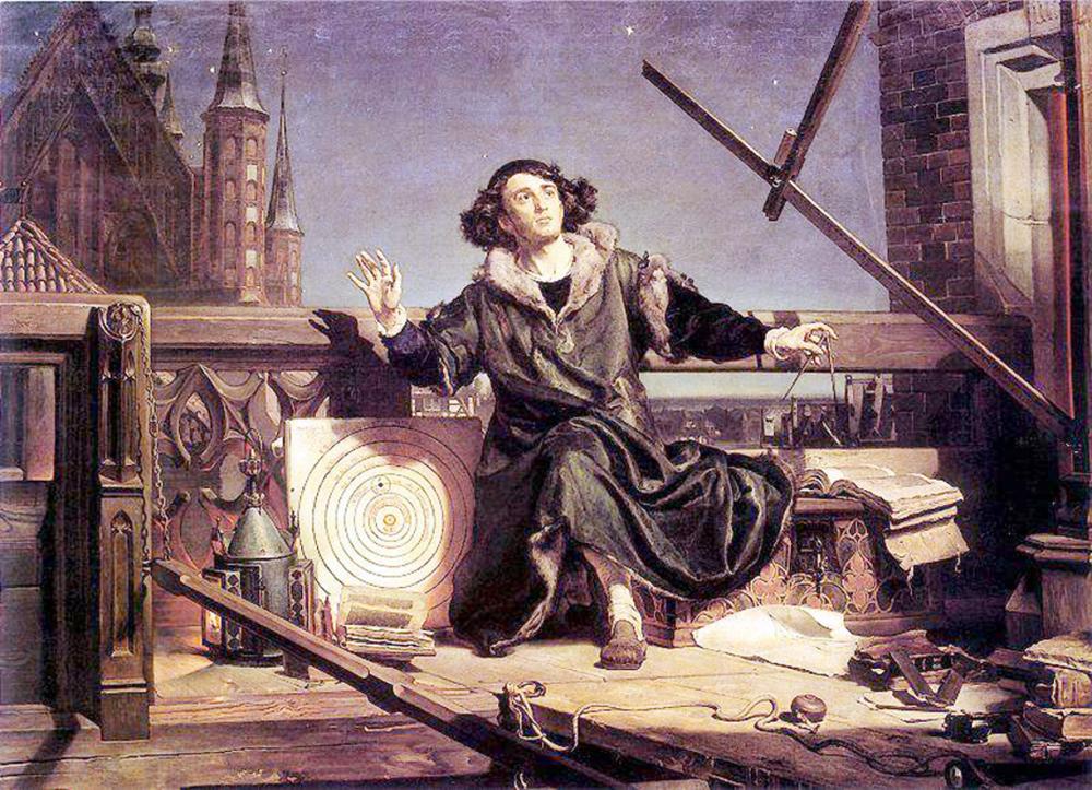 رسم هذه اللوحة الفنان البولندي الشهير «يان ماتيكو» (24 يونيو 1838 - 1 نوفمبر 1893) في احتفالات الذكرى الـ400 لميلاد العالم الفلكي البولندي نيكولاس كوبرنيكوس، وهي تصور كوبرنيكوس يطل من شرفة أحد المعابد القديمة مندهشا، لحظة اكتشافه العظيم (مركزية الشمس)، وكون الأرض جرماً يدور في فلكها. إذ تأكد منذ ذلك الحين أن الأرض تدور حول الشمس، وأنها ليست مركز الكون، ضاربا بذلك بنظرية بطليموس ـ أرسطو عرض الحائط، التي تقول إن الأرض مركز الكون وتدور حولها الكواكب والشمس والقمر، واستمر اعتمادها 20 قرنا، لدرجة أصبح التشكيك فيها كفرا. ورغم أن كوبرنيكوس نفسه كان رجل دين، إلا أن علمه واكتشافه لعبا دورا محوريا في نقل أوروبا من حالة السبات العميق إلى مرحلة النهضة، فكانت الثورة الكوبرنيكية ملهمة الاكتشافات العظيمة لكل من كيبلر، وغاليليو، ونيوتن حول الكون.