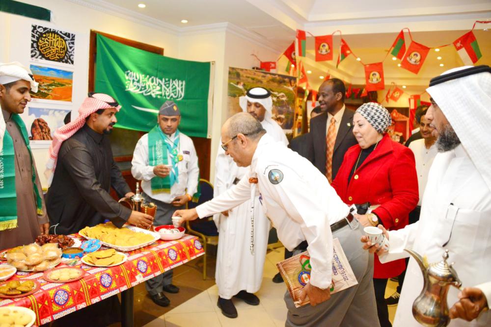 وقدم وفد الكشافة السعودية العديد من الفعاليات، تضمنت الضيافة السعودية ممثلة في تقديم القهوة العربية، وعرضا للملابس الوطنية الرسمية الرجالية لمختلف مناطق المملكة، والأكلات الشعبية المحلية، وتوزيع البروشورات والأقراص المدمجة التي تتضمن عروضاً عن التنمية في السعودية، وبعض التقاليد والعادات فيها، إلى جانب تقديم نماذج للفلكلور الشعبي. كما صاحب الفعاليات معرض مصور لنماذج من أعمال الكشافة السعودية في خدمة المجتمع، أبرزها خدمة الحجاج والمعتمرين، والبيئة، ولاقت هذه الفعاليات إقبالا كبيرا من المشاركين الذين يمثلون 10 جمعيات كشفية وطنية من الجمعيات الكشفية الوطنية.