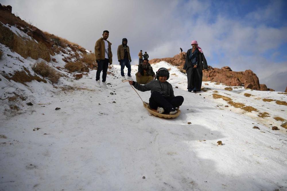 شهدت منطقة تبوك ليلة أمس (الخميس) تساقط كميات متوسطة من الثلوج غطت قمم جبال اللوز وعلقان والظهر، الثلوج أو الزائر الأبيض كما يسمى في تبوك، والذي كان يزور الشمال مرة واحدة كل شتاء، بات أكثر سخاءً في الأعوام القليلة الماضية، حيث أصبح يزورها في السنة ثلاثة مرات في موجات شتوية متتابعة.