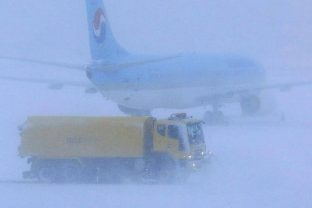 وذكرت وكالة يونهاب الكورية الجنوبية للأنباء أنه تم إلغاء 73 رحلة في مطار جيجو، كما تم إرجاء 91 رحلة أخرى، بعدما ضربت ثلوج كثيفة المنطقة.