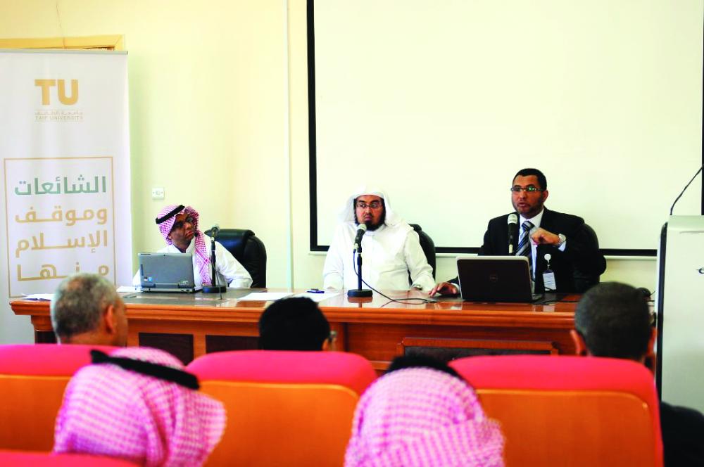 المتحدثون في الندوة التي نظمتها جامعة الطائف. (عكاظ)